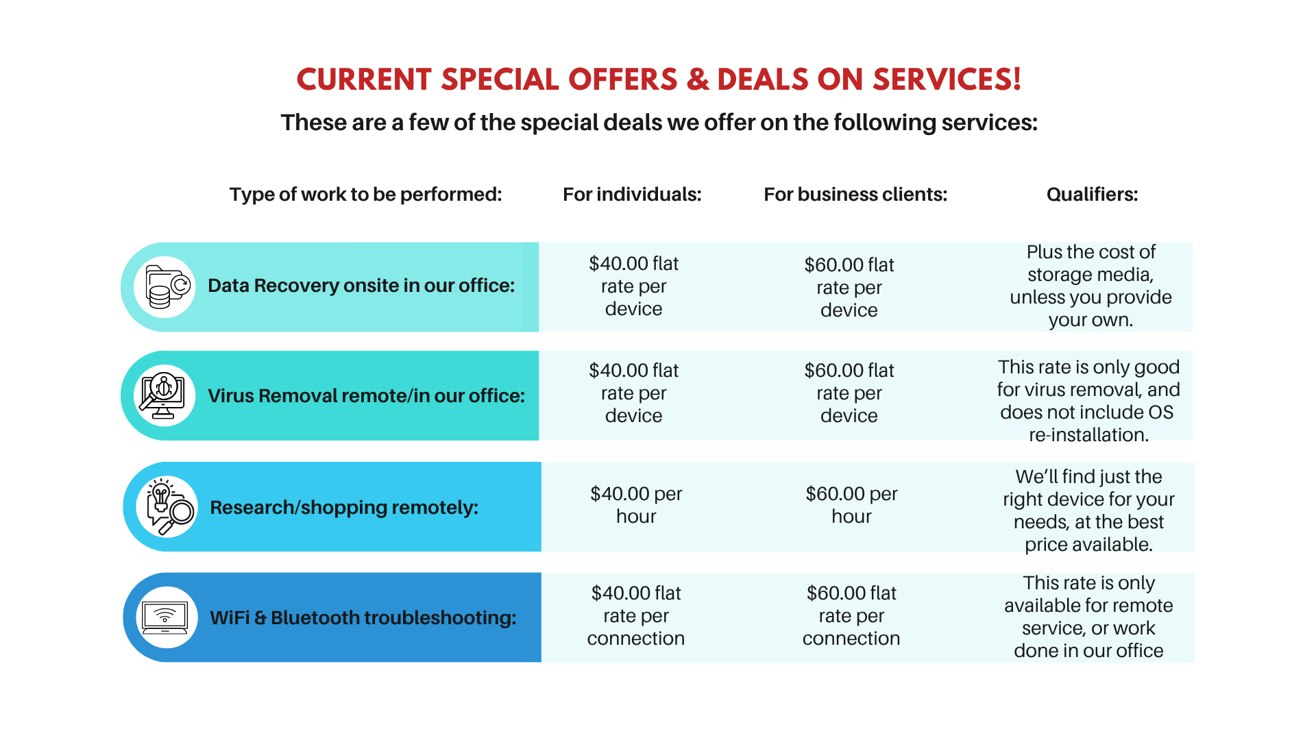 labor rates, deals, & specials